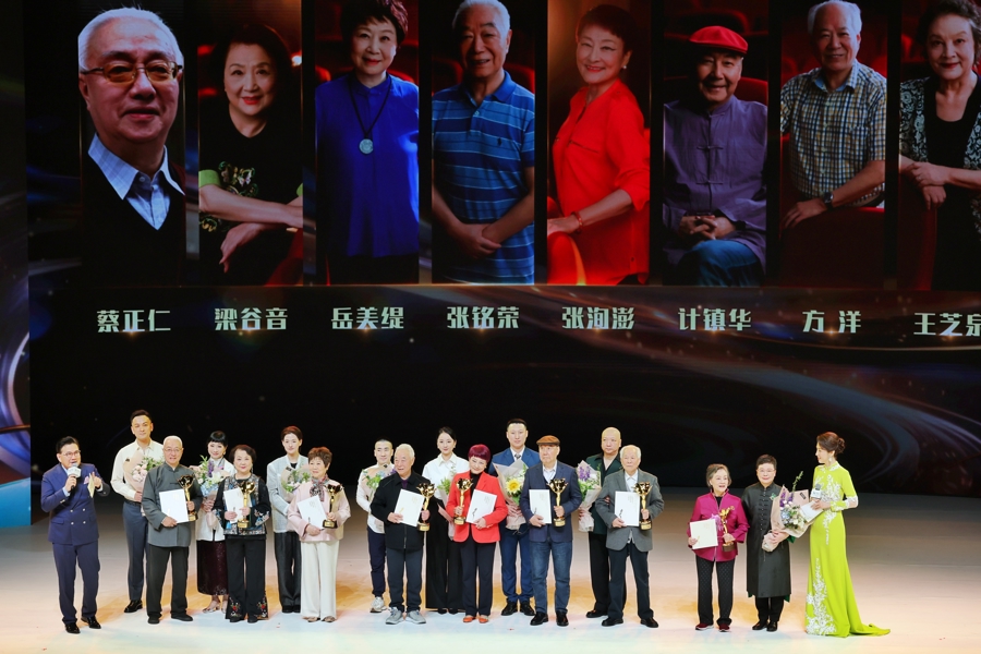 上昆昆大班八位老艺术家上台领奖 均赖鑫琳摄