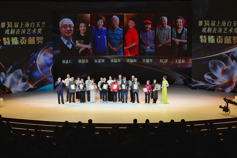 本届白玉兰戏剧奖特殊贡献奖授予上海昆剧团“昆大班”的王芝泉、方洋、计镇华、张洵澎、张铭荣、岳美缇、梁谷音、蔡正仁(按姓氏笔画排序)。当他们走上舞台,全场观众起立鼓掌。